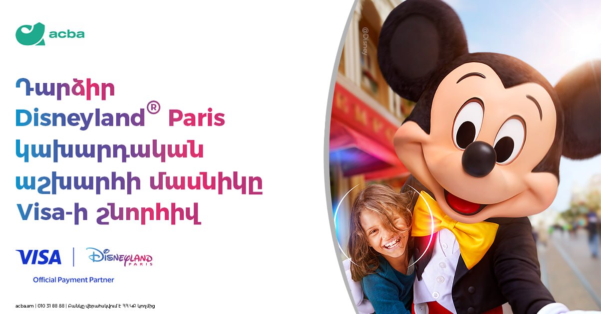ЕРЕВАН, 28 ноября. /АРКА/. Акба банк до 27 февраля 2026 года проводит акцию «Поехали в Диснейленд в Париже» для держателей карт Visa, сообщает пресс-служба банка.