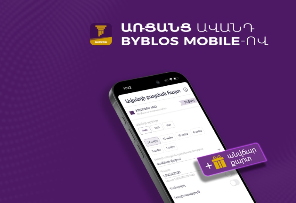 ԵՐԵՎԱՆ, 27 նոյեմբեր․/ԱՌԿԱ/. Բիբլոս Բանկ Արմենիան ներկայացնում է բարձր եկամտաբերությամբ օնլայն ավանդ ներդնելու հնարավորություն՝ Byblos Mobile հավելվածով։